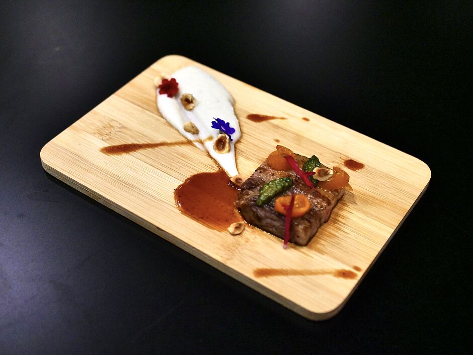 Poitrine de Porc Laineux pochée et rôtie