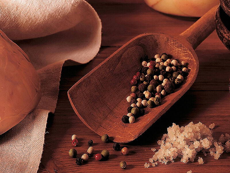 La veille, mettre sur une plaque les lobes de Foie Gras et arroser légèrement de Floc de Gascogne Rouge, d’Armagnac, saler, poivrer et disposer avec parcimonie du piment gascon. Procéder de la même manière pour l’autre côté. Filmer et laisser 1 nuit au frais.